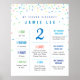 Celebre o marco com o segundo aniversário do seu filho com este poster de aspersão colorida do arco-íris. Apresentando os livros favoritos, comidas, brinquedos, altura, peso, amores e muito mais, você certamente apreciará este poster nos próximos anos. Fácil de editar e seria fantástico para a sua festa!