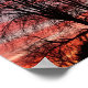 Poster com foto da silhueta das árvores contra o pôr do sol rosa, laranja e amarelo
