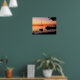 Este belo pôr do sol, com vista para uma fotografia do lago, seria adorável em qualquer parede. As cores laranja intensas com quatro cadeiras e uma silhueta de veleiro são perfeitas para um presente ou para você.