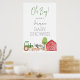 Ah, garoto! Fazenda e trator - sinal de boas-vindas ao chá de fraldas com animais de exploração bonitos, celeiro vermelho e trator verde. Todo texto é editável, personalize com o texto de sua escolha.
