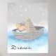 Poster de trabalho de arte de parede de um menino adorável no quarto de um menino em um barco de chapéu de jornal sob as estrelas. O sonho em texto azul pode ser personalizado para ler o que você quer.