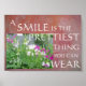 Um poster de aspas sorridentes sobre fundo rosa e flor