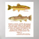 Trabalho de arte da Truta Arco-Íris do rio Kern e da Truta Marble da Eslovênia pelo artista natural Thom Glace, com uma citação arcaica divertida sobre os peixes de Thomas Best em 1787. Projetado para o Compro Grizzly Hackle Fly de Missouri, Montana.