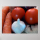 Produtos hortícolas frescos maduros de cenoura, tomate, alho e gengibre. Pronto para ser cortado e cozido em uma refeição deliciosa. Bonita e saborosa para todos comerem e aproveitarem.