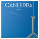 A arte poster de viagens australiana Canberra, que inclui controlos, e o Parlamento australiano.
