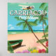 Poster de viagens de Carriacou, poster de férias de Caribe, praia arenosa e arte de férias de barco.