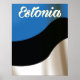 Poster de viagens de desenho animado da Estônia. Visite a nação da Estônia na Europa com este poster de férias retrógrado. Poster de viagens de bandeira nacional da Estônia