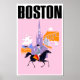 Poster de viagens de estilo Vintage para Boston, Massachusetts. Um se por terra, dois se por mar.