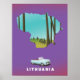 A Lituânia mapeia o poster de viagens com um mapa da nação e um bonito pequeno carro.