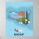 Ilha Sicília Mapa ilustrado com impressão-poster de viagens.