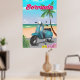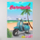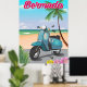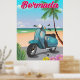 Poster de viagens de Patinete das Bermudas - poster de viagens retrorreflector das Bermudas com uma bicicleta de patinete retrô em uma praia arenosa.