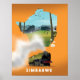 Zimbabwe Map poster de viagens de motor a vapor para locomotivas.