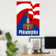 Poster de viagens Patriótico para Filadélfia, com a sala de independência.