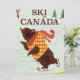 Esqui no Canadá os desenhos animados exibem o poster de férias de vintage ou retrô. Poster de viagens de desenho animado de urso castanho