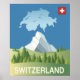 Este design apresenta os Alpes suíços em um poster de viagens.
