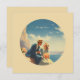 poster viagens vintage de um casal romântico perto do mar. Flores cor-de-rosa macia no primeiro plano e um belo céu azul claro no fundo,