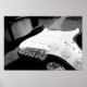 Um excelente de uma guitarra elétrica em preto e branco. Perfeito para qualquer entusiasta do violão!