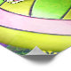 Poster de gráficos de voleibol feminino com um toque floral e três volleybolas com painéis multicolores de rosa quente e roxo, amarelo, verde e vermelho - personalize com seu nome e número de camisa - por katz_d_zynes