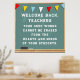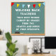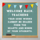 "Bem-vindo de volta" inspirador para os professores de escolas com quadro e citação.