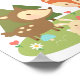 Decore o quarto das crianças ou a sala de bebé com esta linda decoração de parede com tema de animais da floresta! Este padrão giro, alegre e colorido é feito usando uma variedade de animais da floresta, que incluem pássaro, veado, raposa, um coelho a saltar, um esquilo com noz e um ouriço. Decorada com árvores, margaridas brancas, flores e cogumelos, é acolhedora como a primavera! Personalize com o nome da criança.