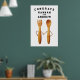 Design fácil de personalizar com a noiva e o noivo como um garfo e uma colher de desenho animado. Edite o texto para adicionar nomes.