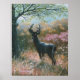 Pintura de cervo num campo por poster de árvore baseada em pintura de Bobbye Campbell