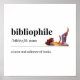Esta poster apresenta uma definição da palavra "bibliófilo". Imagem acima da definição, é uma ilustração de uma garota lendo um livro. Também disponível em branco a preto.