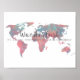 Definição de Wanderlust em Turquesa e rosa blush no mapa mundial de cores d'água poster.