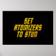A frase "Coloque os atomizadores para atordoar" em letras amarelas marcantes, influenciadas pelo mais famoso conceito de ficção científica de todos os tempos. Esqueça os phasers e o espaço, vaporizar é a fronteira final! Se você ama ecig, cifi e humor, você não quer perder esse aqui.