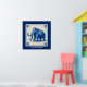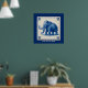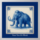 Um gigante corajoso, monotone, mamute azul (mammathus primigenius) ao estilo de um azulejo Delft. Personalize adicionando seu próprio texto.