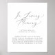 Este sinal de memorial de casamento de amor de prata delicado é perfeito para um casamento moderno. O design minimalista romântico apresenta uma tipografia cinza prateada adorável e elegante em um fundo branco com uma aparência limpa e simples.