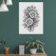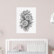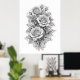 A beautifully detailed pencil-style illustration of a classic rose bouquet, featuring three fully bloomed roses surrounded by delicate buds and softly veined leaves. This black-and-white artwork highlights fine linework and subtle shading, creating a timeless, elegant look that works with any aesthetic.