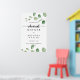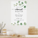 Este delicioso sinal de boas-vindas do janto de ensaio de eucalipto é perfeito para um ensaio de casamento simples. A design apresenta galhos e folhas botânicas elegantes e desenhadas a aquarela e desenhadas à mão.