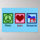 Este poster amoroso partido democrático apresenta um design liberal legal de um sinal de paz, coração, e burro vermelho, branco e azul. Peace Love Democrat.