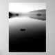 Uma rocha solteiro quebra a superfície lisa da água de Derwentwater nesta fotografia branca e negra do lago no inverno.