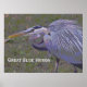 O Herão Azul Excelente na fotografia original deste poster mostra sua plumagem, parecendo um pouco com um porco-espinho, enchendo suas penas para se fazer parecer maior, para dizer a outro pássaro que é seu território. Na foto que vemos o pássaro em perfil, sua coloração azul de cinza terminando em uma cabeça branca com bandas azuis profundas em cada lado. Seu longo bico amarelo está apontando hetero à frente enquanto ele caminha em frente com seu longo e curvo pescoço, preso contra seu corpo. O fundo das gramíneas está em tons de terra mutada com pedaços de verde ao longo. Na parte inferior esquerda da imagem, há um texto branco que diz "Excelente Blue Heron". Isso pode ser alterado ou excluído para atender às suas necessidades.
