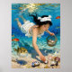 "Mio's Descent" - Um Retrato Oceânico. Com um rosto calmo e um derrame gracioso, um mergulhador Ama coleciona pérolas sob a luz ondulante. Seu cesto está cheio de tesouros do mar enquanto peixes deslizam ao lado. Esta pintura captura não apenas o trabalho, mas a poesia: a descida de uma mulher para a água torna-se uma história de harmonia entre corpo, alma e oceano.