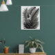 Ilustração detalhada e intrincada de samambaias, folhas e sementes dispostas em uma bela composição. O esquema de cores preto e branco acrescenta um sentido de elegância à ilustração. Esta ilustração é projetada com fundo branco para permitir que as plantas se destacem.