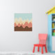 Um design constituído por formas irregulares de onda ou colina dispostas como uma paisagem com progressão de bandas, uma atrás ou sobre outra brincando abstratamente com cor e espaço. A design também lembra muito o som e a música com as formas da onda e harmonizando as cores.