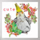 Desenho em aquarela de um papagaio Corella engraçado - Ninfas em plantas tropicais e flores
