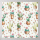 A soft, watercolor design created with blooming cacti in flower pots. Artist: Daphne Brissonnet