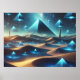 Poster Deserto Azul Surreal e Pirâmides Flutuantes