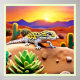 Uma imagem vibrante de uma lagartixa-leopardo em seu hábitat desértico no pôr do sol, cercada por cactos e suculentos. Explore a beleza deste réptil e paisagens áridas avistadas. Perfeito para lagartixa e amantes do deserto (Esta Design Feita Com IA). Faça a ordem hoje e encare a alegria de Comprar!