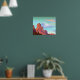 Impressão em uma ilustração de estilo boho/minimalista de uma cena do deserto sudoeste de picos de montanha de terracotta com um céu aqua