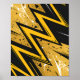 Um fundo abstrato impressionante dominado por formas de ziguezague amarelas em negrito que cortam um pano de fundo preto. O design é infundido com padrões geométricos agudos, triângulos fragmentados e listras de branco que se assemelham a flashes energéticos. O contraste entre o amarelo ouro e o preto profundo cria um poderoso e dinâmico impacto visual, enquanto as texturas e fissuras em camadas aumentam a intensidade e o movimento. Este trabalho de arte capta a essência da velocidade, potência e energia explosiva em um estilo gráfico moderno.