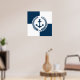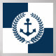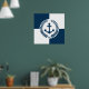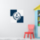 Design com temas náuticos, com decoração da soleira da âncora e da soleira do louro sobre fundo geométrico azul e branco
