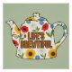 Um bule de chantilly florido em um fundo colorido de sábio pálido com palavras coloridas de chalé que soletram "A Vida é Bonita".