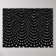 Design gráfico de um padrão de bolinhas brancas em um fundo preto, que se parece com uma cortina.
