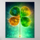 Uma Rua alegre. O dia de Patrick com um trevo sortudo de quatro folhas cercado por canecas de cerveja. O trevo é verde vibrante com detalhamento intrincado, sorte radiante e festividade. As canecas de cerveja são ouros com espuma branca transbordando, acrescentando um toque comemorativo. Moedas Douradas e um sutil sotaque arco-íris no fundo de uma Rua mágica.