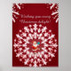 Padrão decorativo de flocos de neve em fundo vermelho profundo, perfeito para o inverno e temas festivos. Um design cativante e sofisticado, ideal para materiais de férias, anúncios ou cartões de saudação sazonais.